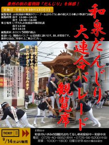 今回は10月12日~14日に、弊社地元で「だんじり」が行われました。
